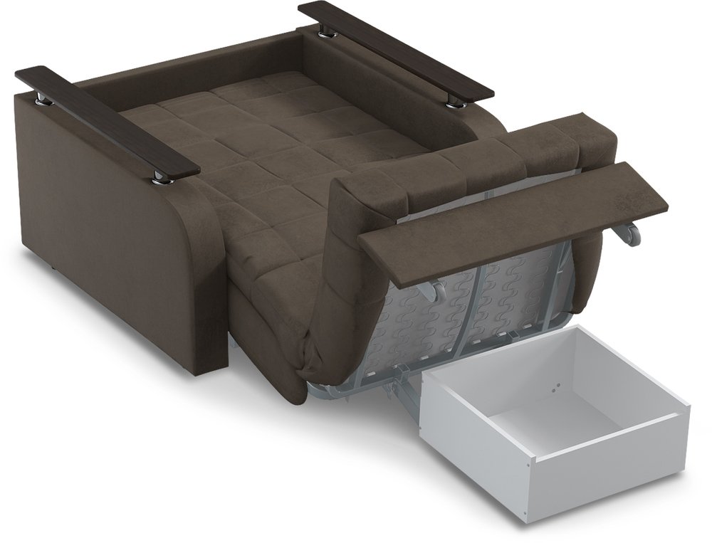 В качестве дополнительной опции к креслу-кровати предлагается бельевой короб, который устанавливается под механизм трансформации.