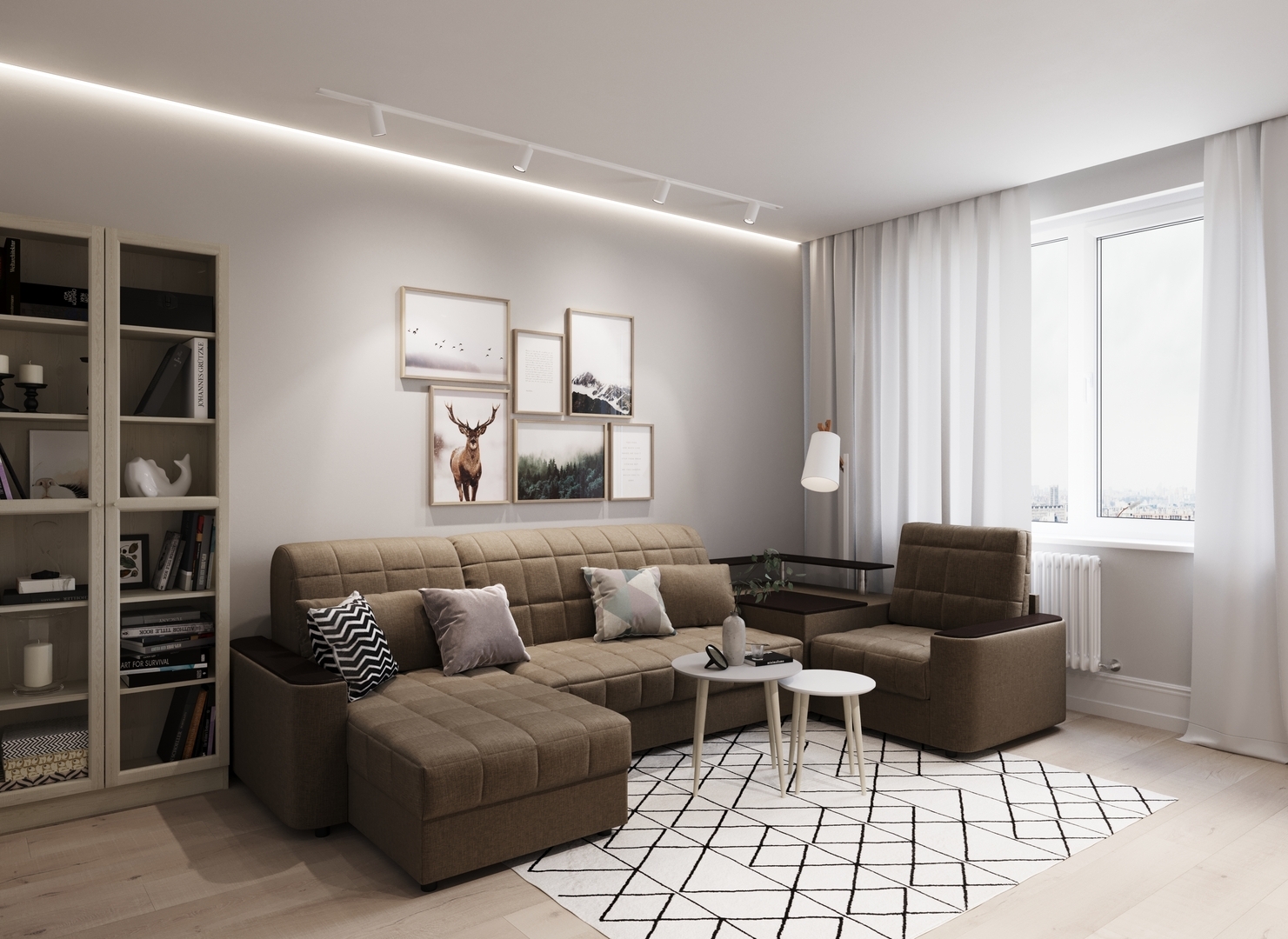 Объемные подлокотники — стильная деталь, отлично вписывающая диван в интерьер современной городской квартиры.