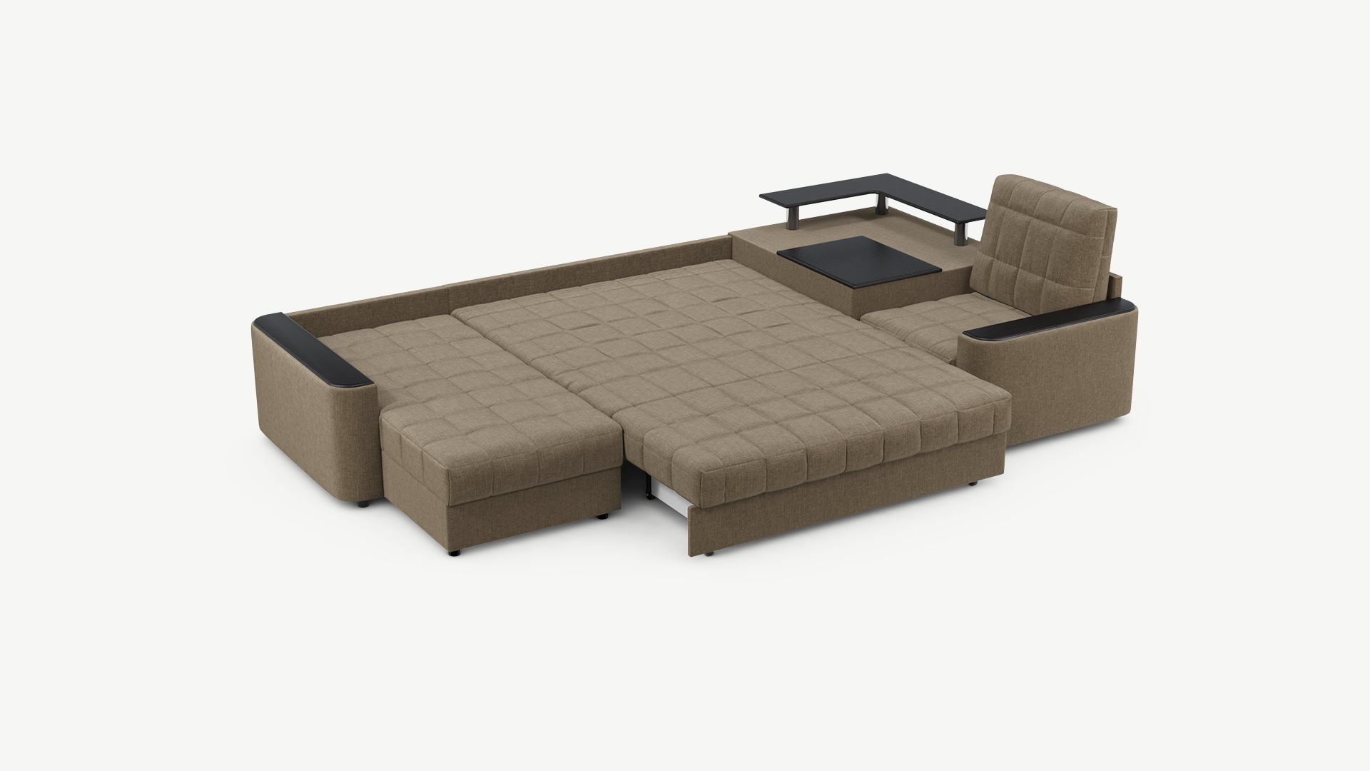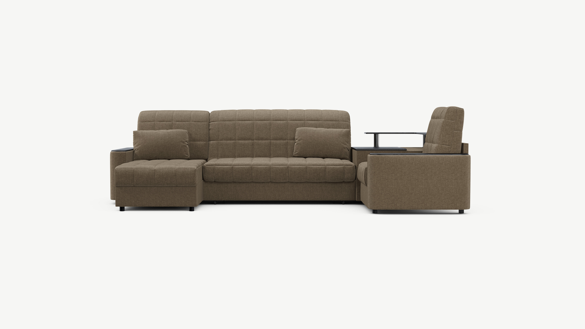 Выбирая угловой диван со столиком, Вы сможете проводить время с максимальным комфортом, многократно повысив функциональность дивана. Все дело в том, что под столешницей модуля расположена вместительная емкость для хранения. Кроме того, поверхность столика — идеальное пространство для чаепития в приятной компании, а также место для множества актуальных мелочей — от ноутбука до косметики.