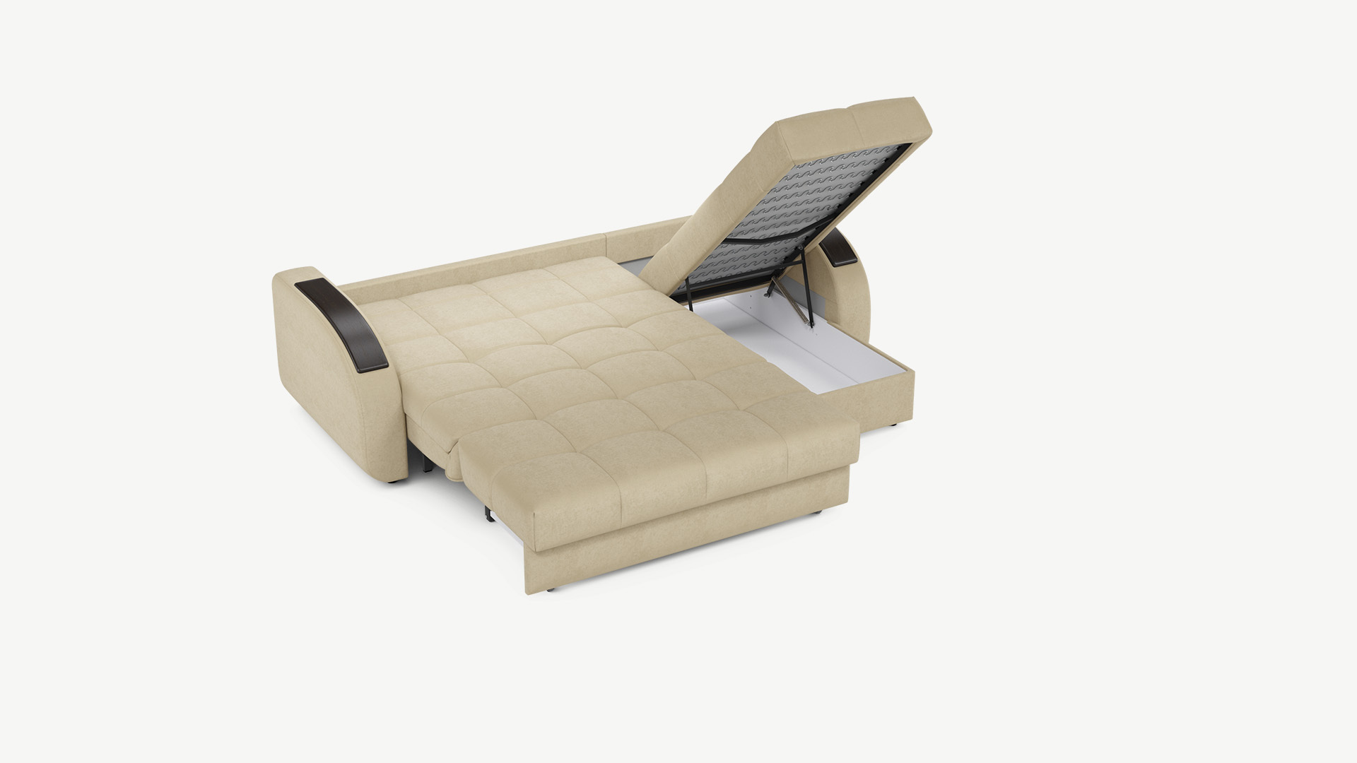 Оттоманка обеспечивает дополнительное пространство для отдыха, благодаря которому Вы можете располагаться с максимальным комфортом, вытянув ноги. Под данной секцией расположен вместительный бельевой короб.