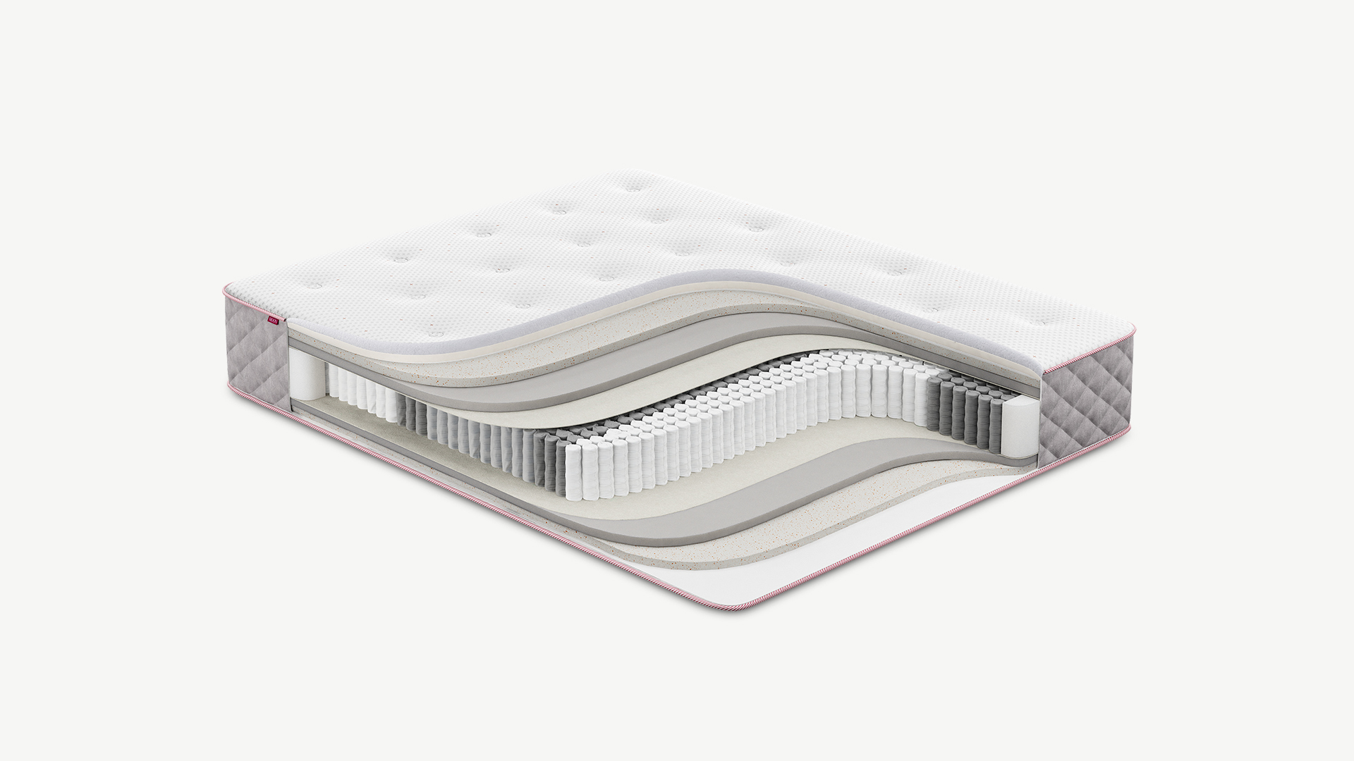 Обеспечивает естественный воздухообмен и сохраняет форму матраса. Выполнен из плотного трикотажа, простеганного на слое упругой пены и искусственного объемного волокна. Точечная стежка поддерживает превосходный уровень комфорта и не позволяет наполнителю смещаться в процессе эксплуатации.