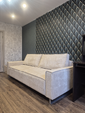 Спинка, выполненная в обивочной ткани, позволяет ставить диван в центре комнаты и зонировать пространство.