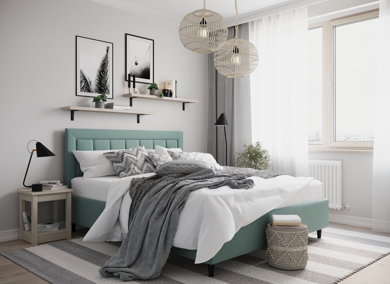 Создать гармоничный интерьер, а также целостный образ спальни помогут дополнительные аксессуары - например, тумбы, банкетки, подушки.