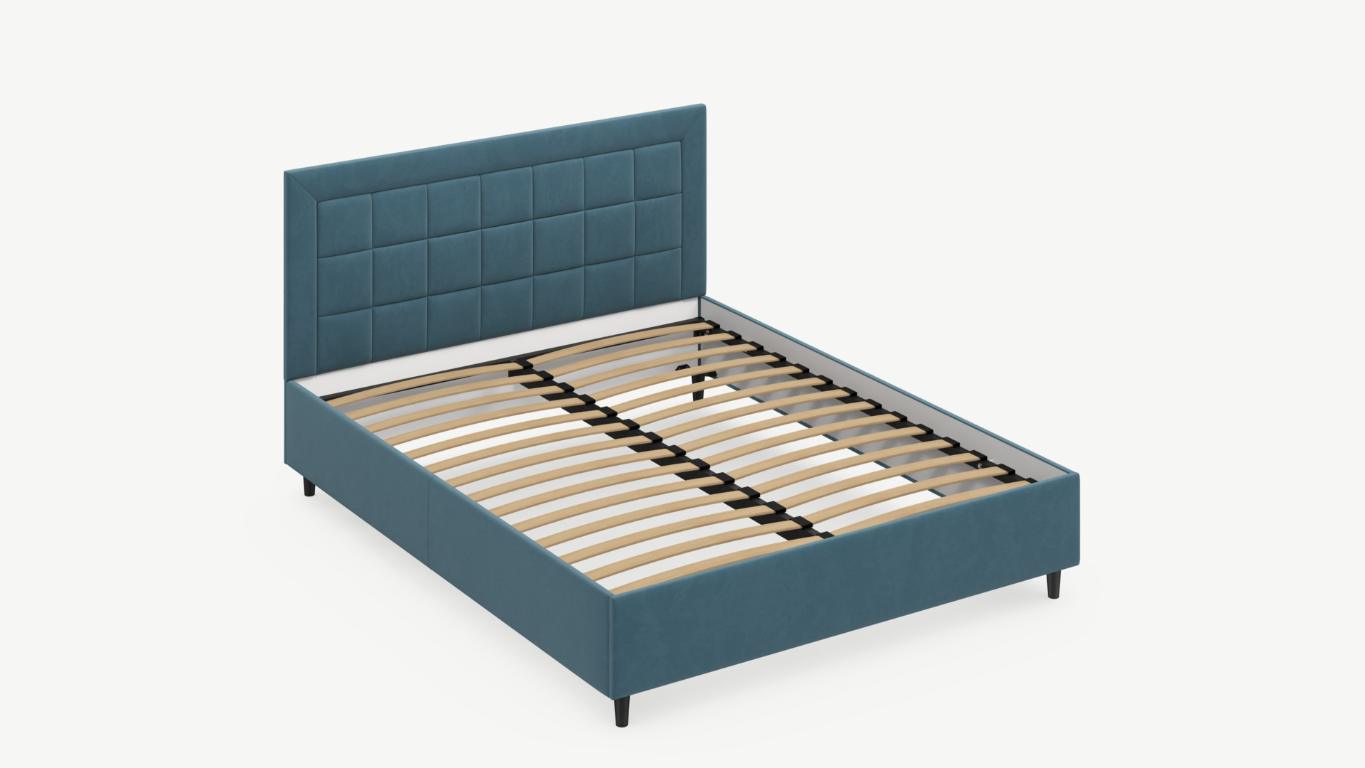 Рама, изголовье и царги надежно крепятся между собой, обеспечивая прочность и устойчивость кровати.