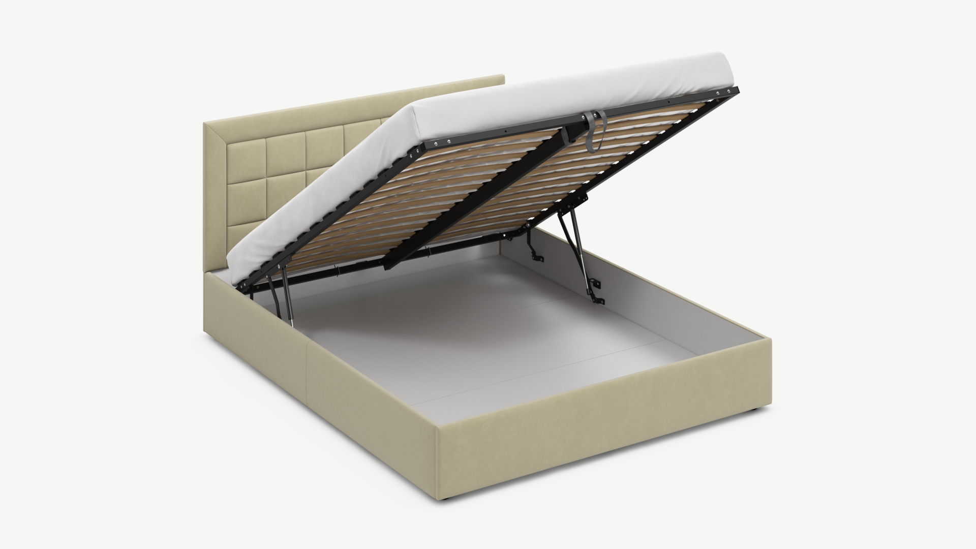 - Скрытая под основанием вместительная емкость без внутренних перегородок позволяет использовать всю площадь подкроватного пространства для хранения вещей.