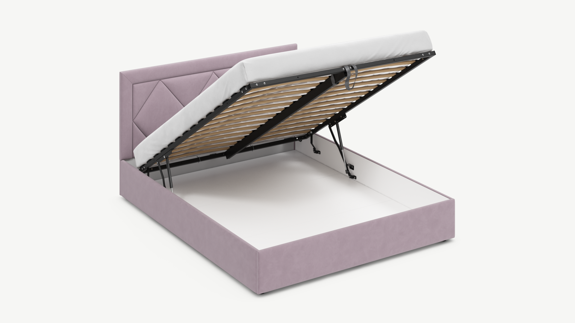 - Скрытая под основанием вместительная емкость без внутренних перегородок позволяет использовать всю площадь подкроватного пространства для хранения вещей.
