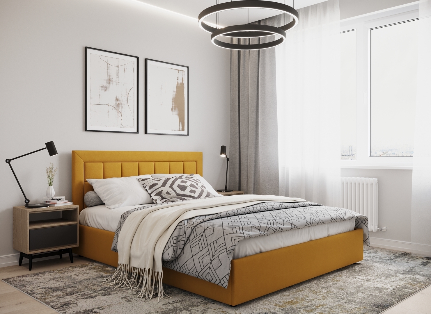 Создать гармоничный интерьер и завершить образ спальни помогут дополнительные аксессуары, например: тумбы, банкетки, подушки.