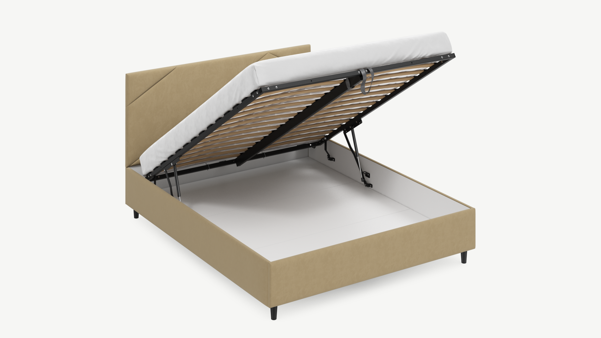 • Скрытая под основанием вместительная емкость без внутренних перегородок позволяет использовать всю площадь подкроватного пространства для хранения вещей.