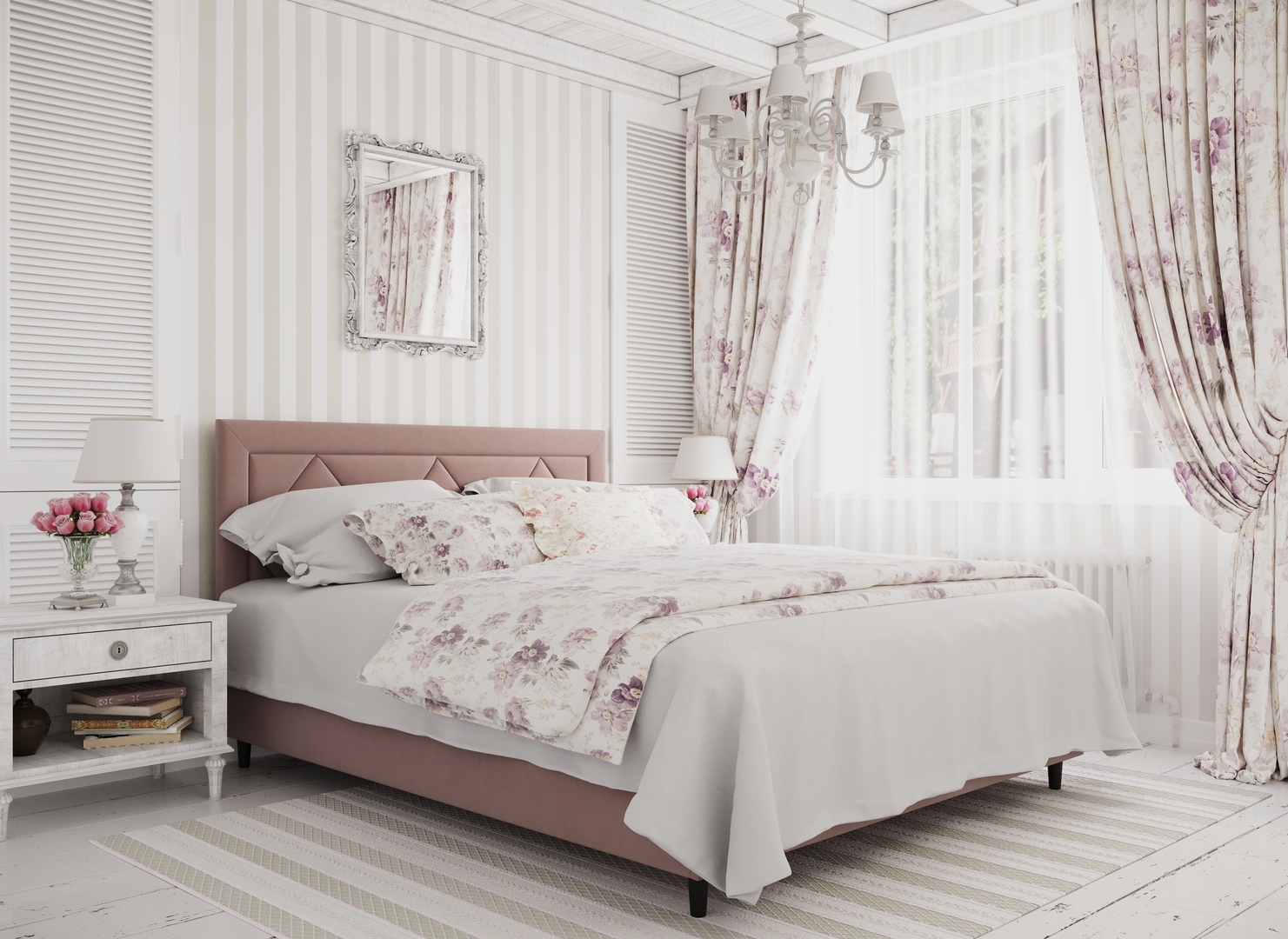 Создать гармоничный интерьер и завершить образ спальни помогут дополнительные аксессуары, например: тумбы, банкетки, подушки.