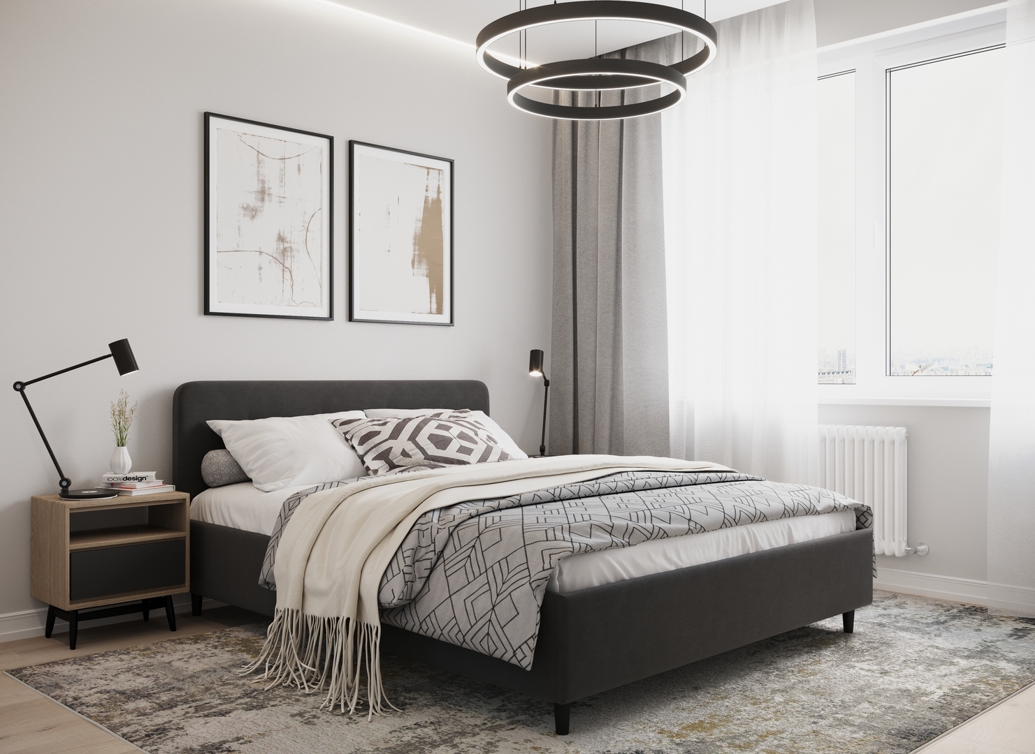 Создать гармоничный интерьер и завершить образ спальни помогут дополнительные аксессуары, например: тумбы, банкетки, подушки.