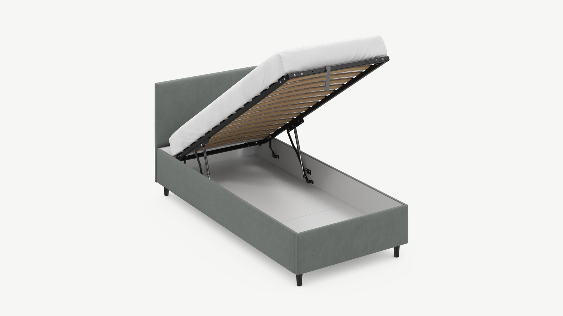 Регулируемый подъемный механизм с газовыми амортизаторами позволяет плавно и бесшумно поднимать и опускать спальное место.