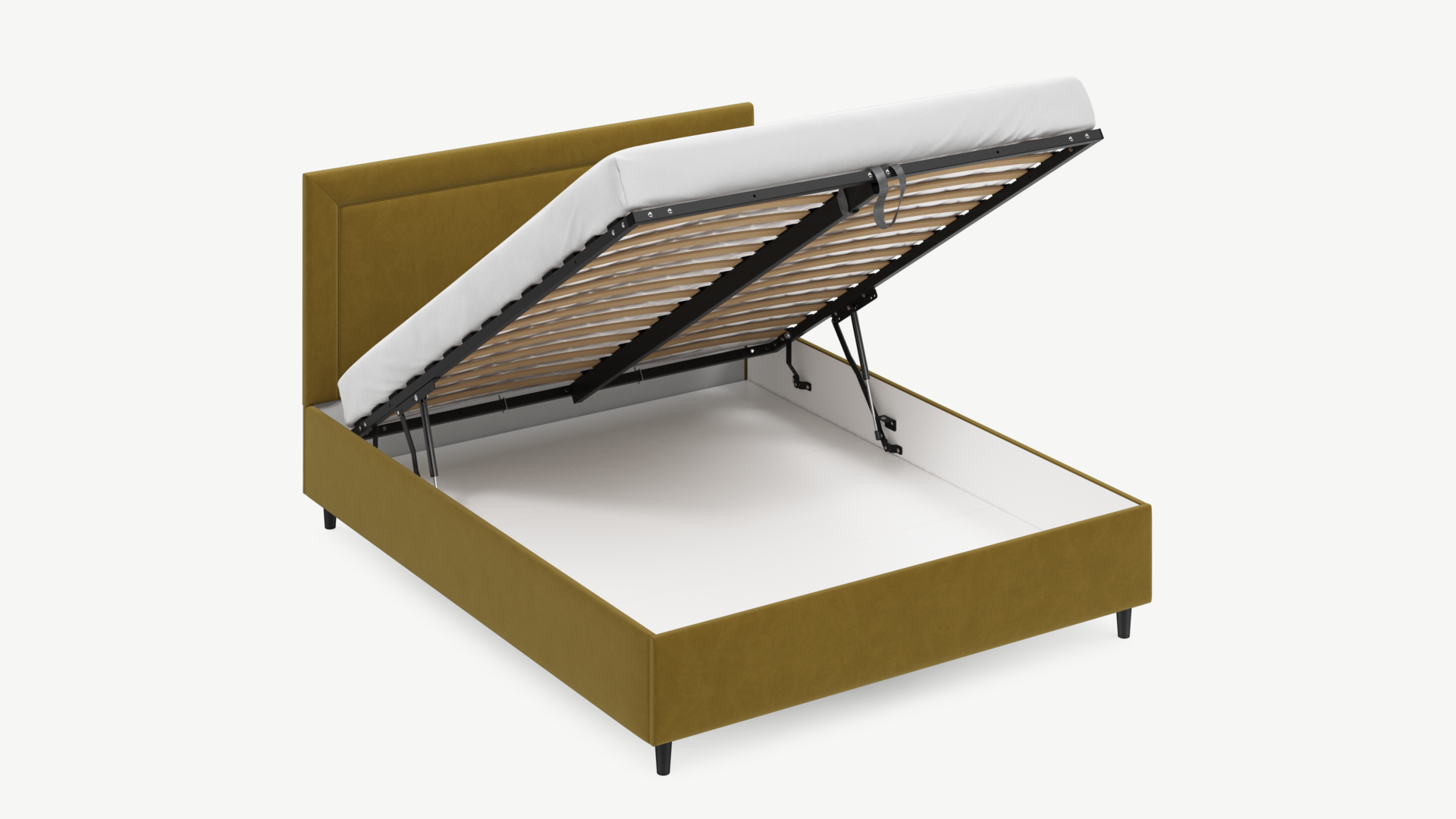Регулируемый подъемный механизм с газовыми амортизаторами позволяет плавно и бесшумно поднимать и опускать спальное место.
