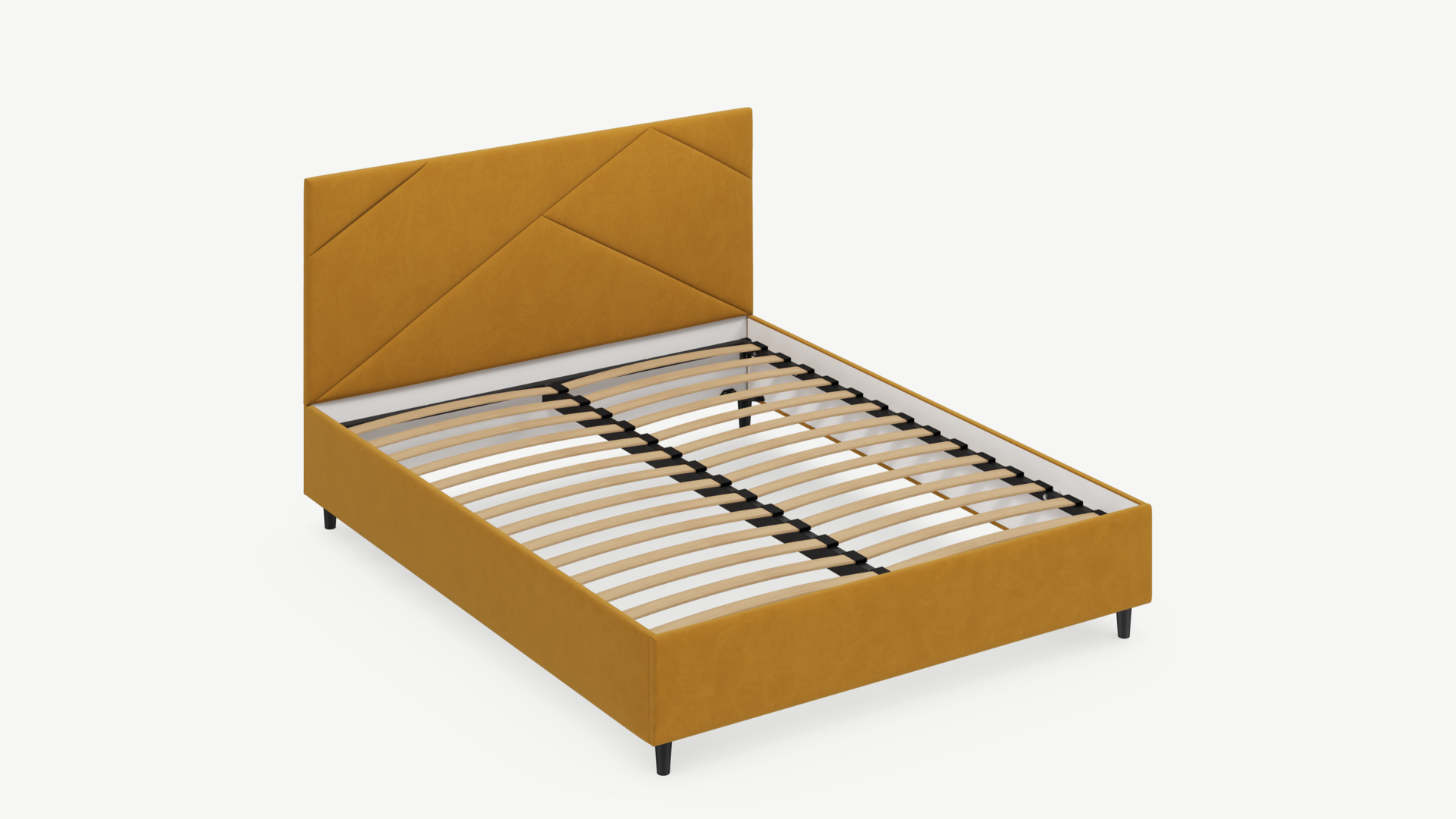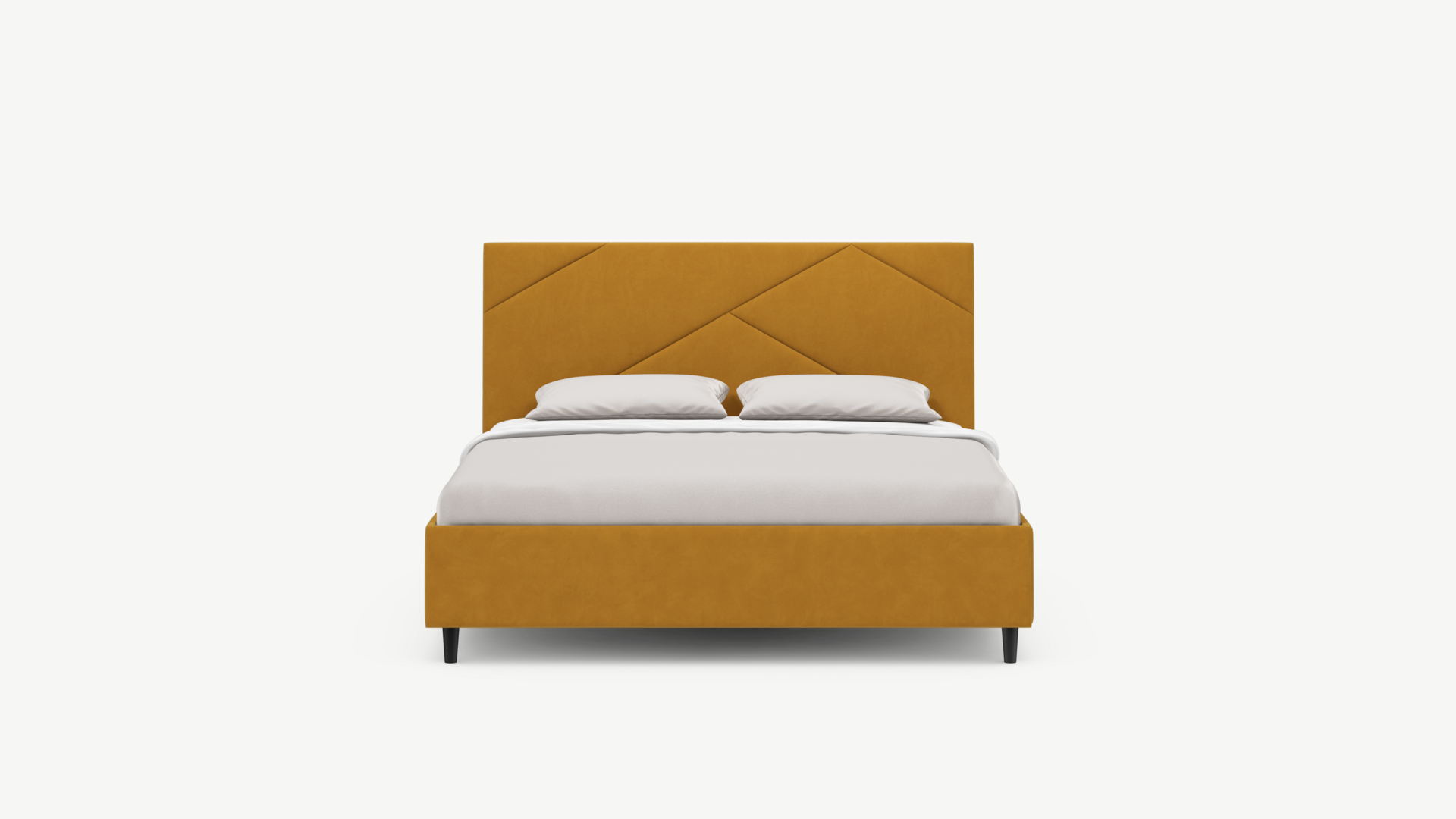MOON FAMILY 1257 привлекает внимание оригинальным исполнением: широкие полосы ткани эффектно пересекают периметр изголовья, создавая на нем графический орнамент. Лаконичные формы объемных царг создают единый гармоничный образ и фокусируют внимание на центральном текстурном элементе кровати.