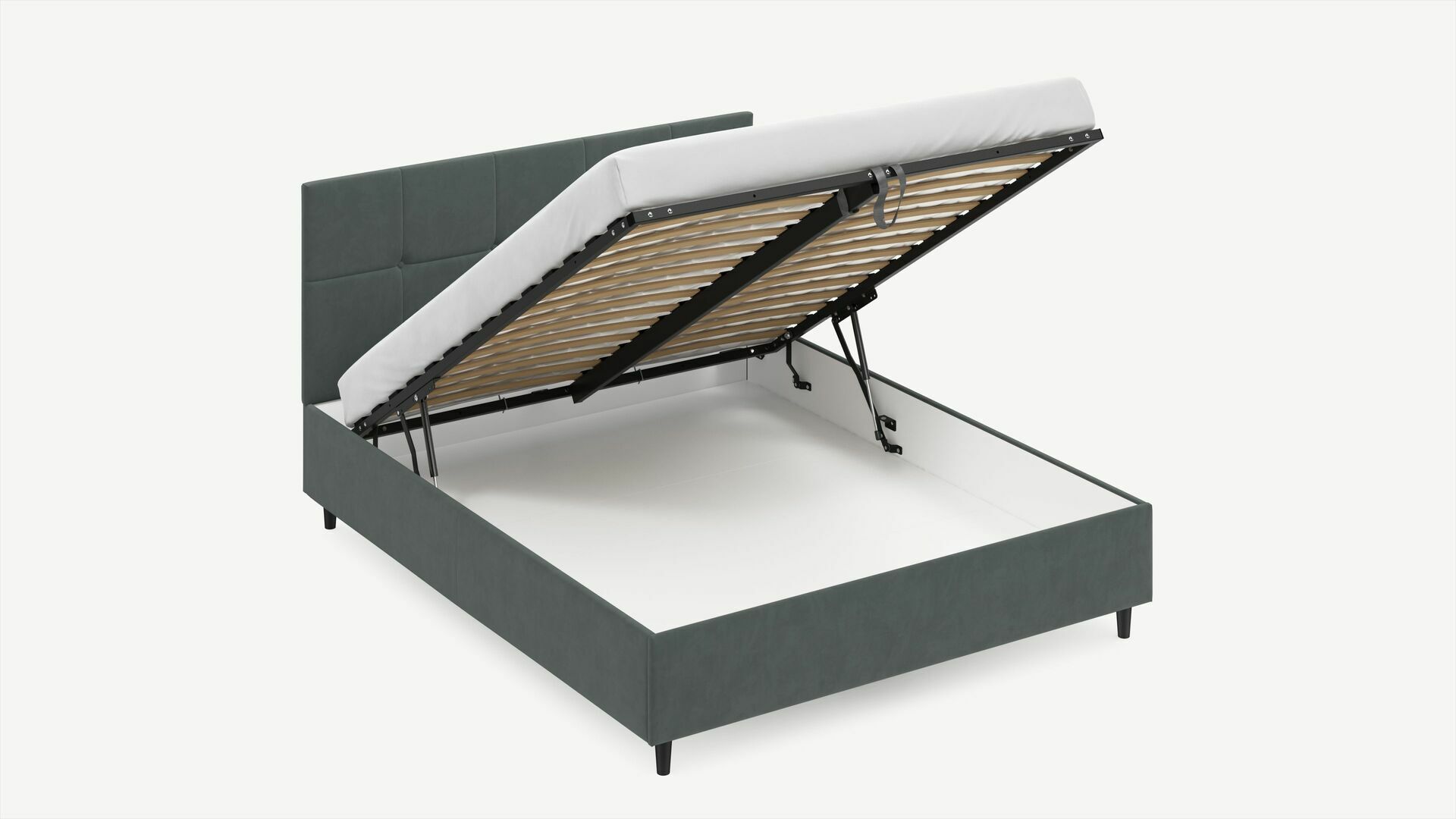 • Скрытая под основанием вместительная емкость без внутренних перегородок позволяет использовать всю площадь подкроватного пространства для хранения вещей.