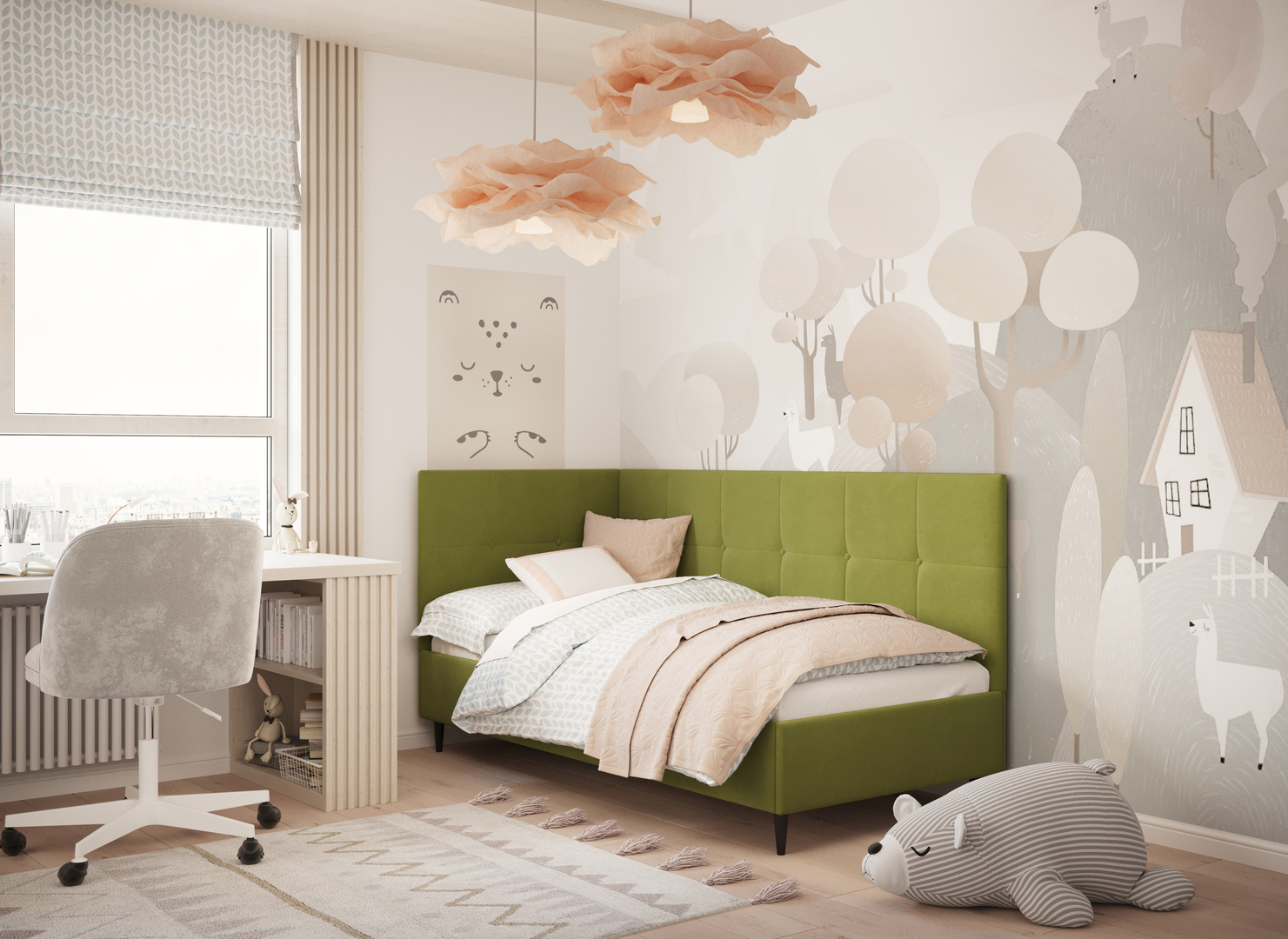 MOON FAMILY 1261 объединяет функциональность и стиль, создавая гармоничное пространство для отдыха и творчества. Кровать доступна в левостороннем и правостороннем исполнении, что позволяет легко адаптировать ее под любые интерьерные особенности.