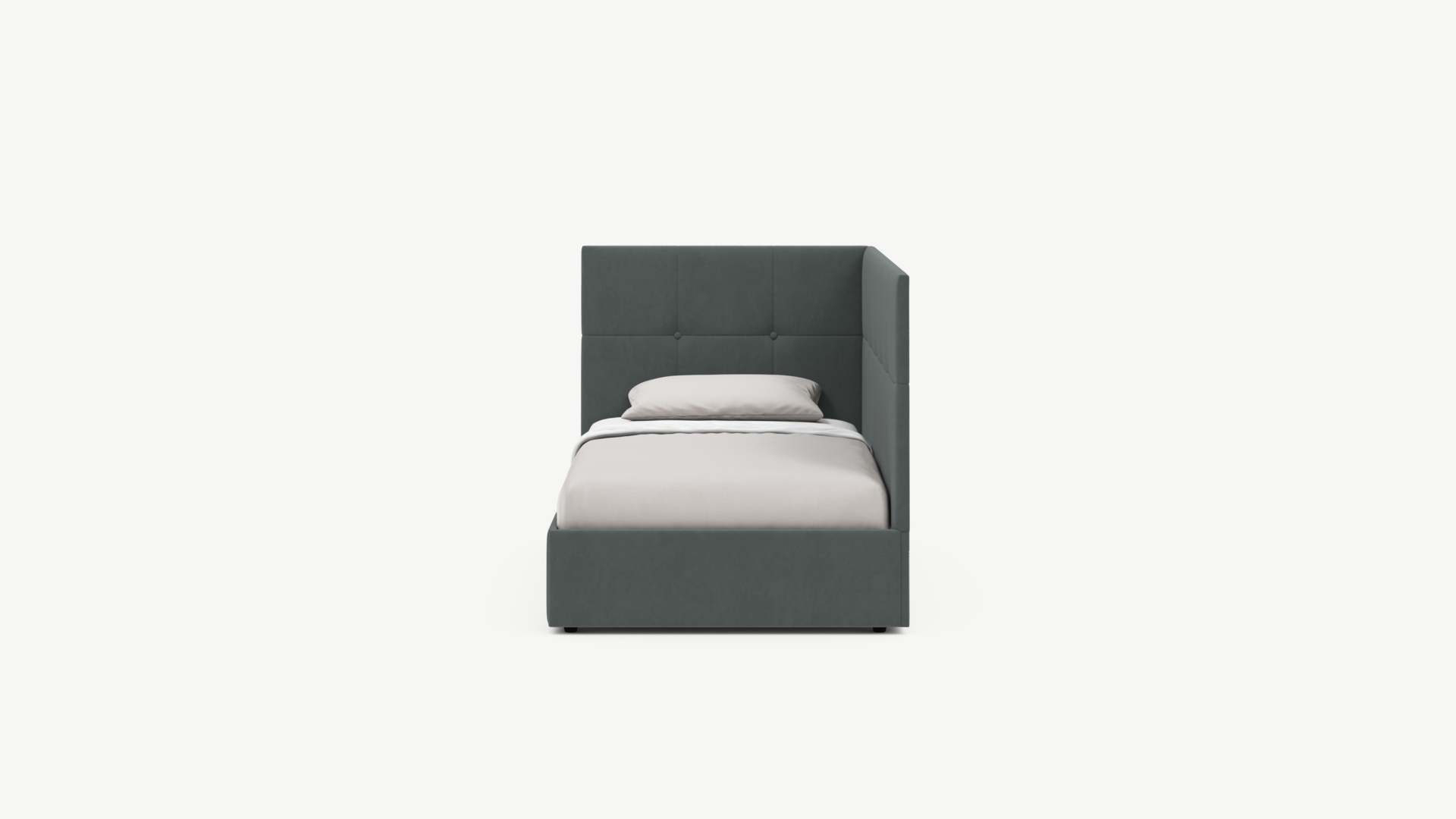Кровать угловая с подъемным механизмомУгловая односпальная кровать MOON FAMILY 1261 с мягкой спинкой и изголовьем создаст в Вашей спальне ощущение уюта. Крупная квадратная стежка привносит в интерьер графических акцентов, а вставка из пуговиц наполняет пространство ощущением домашнего тепла.