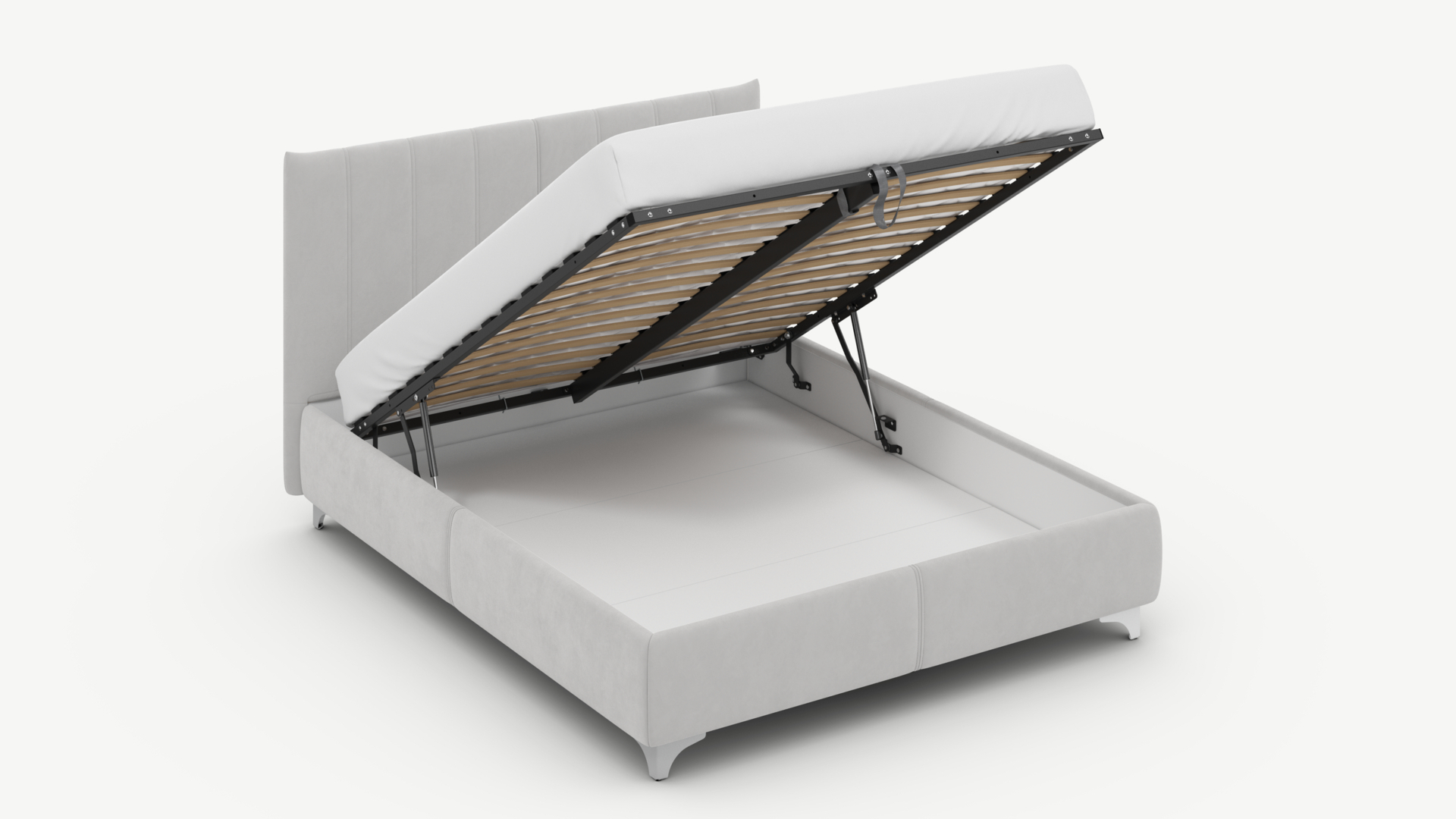 • Скрытая под основанием вместительная емкость без внутренних перегородок позволяет использовать всю площадь подкроватного пространства для хранения вещей.