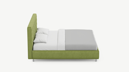 Оформите образ кровати, выбирая обивочный материал, который подчеркнет звучание Вашей спальни и отразит Ваш вкус. Обратите внимание на однотонный гладкий велюр, который усиливает объемную фактуру стежки.