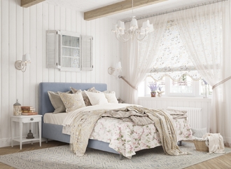 Творческий подход к выбору обивочного материала меняет образ дизайна. Велюр за счет своей бархатистой фактуры привносит в пространство шика и утонченности. Шенилл дополняет оформление спальни природными текстурами, создавая атмосферу тепла и уюта.
