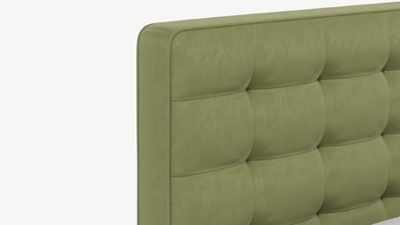 Оформите образ кровати, выбирая обивочный материал, который подчеркнет звучание Вашей спальни и отразит Ваш вкус. Обратите внимание на однотонный гладкий велюр, который усиливает объемную фактуру стежки.